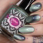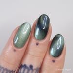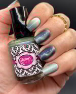 Glisten & Glow ⭐️Freeze Frame – frozen sage green magnetic polish that once magnetized reveals purple to blue color shifting shimmer
