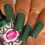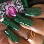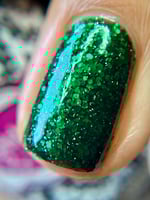 F*ck I want - Black based jellie polish loaded with various sized hex emerald glitters and holo flakes
