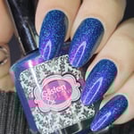 ⭐️Glisten & Glow – Yankee Doodles - A bold navy base with indigo undertones loaded with color shifting aurora shimmers ranging in purple/pink/peach/gold/bronze/green with home run holo flakies